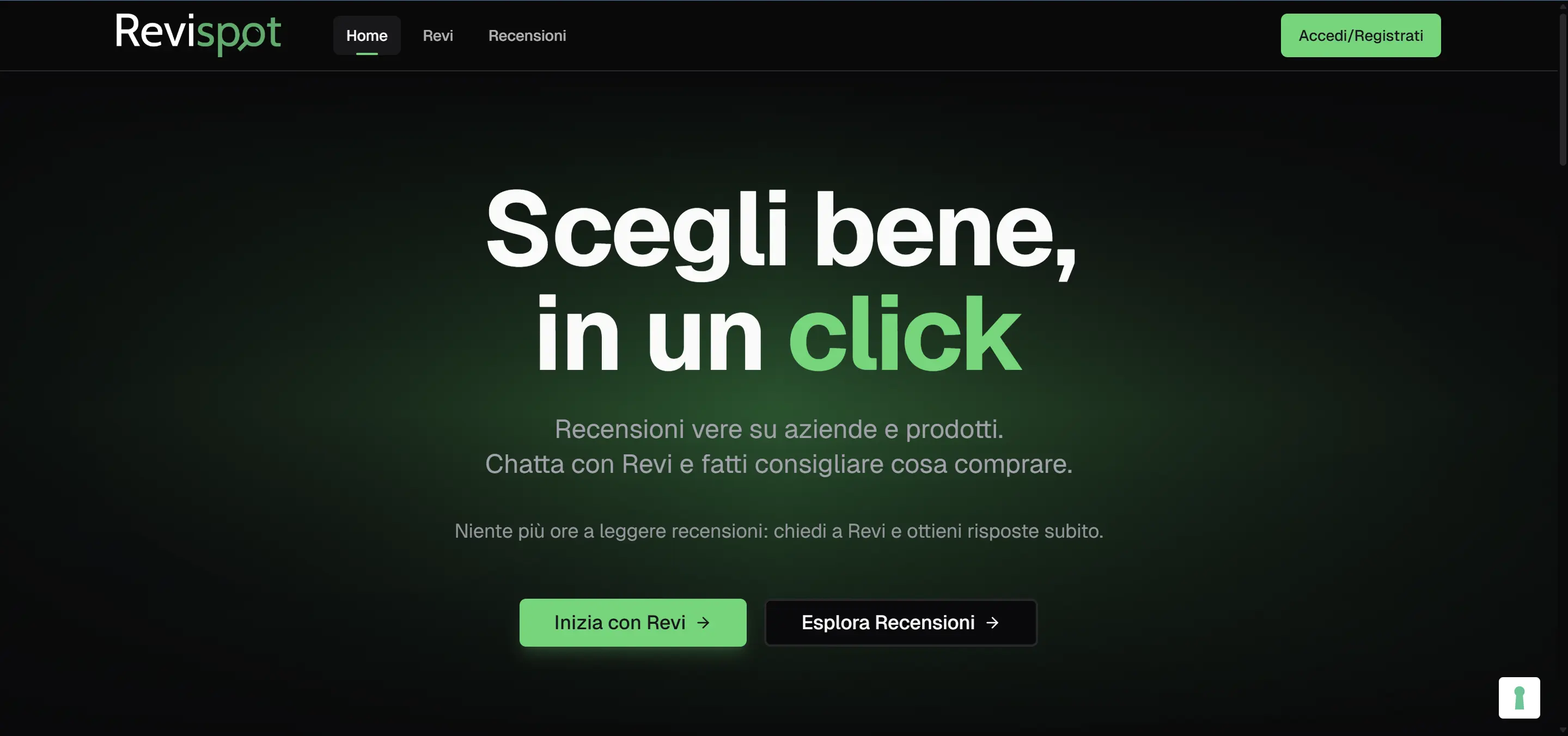 Sito onlineRecensioni verificate, chat con Revi per consigli d’acquisto e community: landing chiara su fiducia e azioni (prova Revi, esplora recensioni).